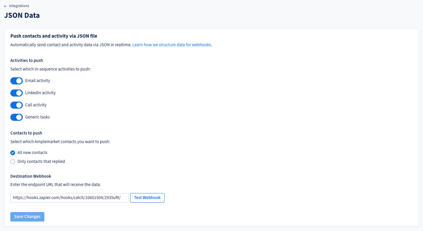 These are the steps to follow in your Amplemarket Account in order to enable the JSON Data Integration:- Login in to your Amplemarket Account